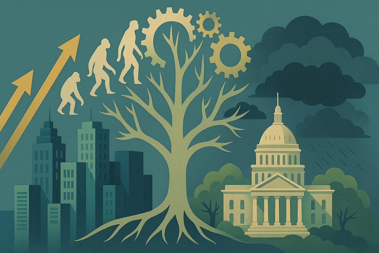 Darwinian competition has unleashed extraordinary ingenuity and growth, yet it now collides with twenty-first-century realities: planetary boundaries, digital monopolies and polarised societies. Western economies must evolve once more—this time toward blended models that reward innovation and protect the public good. The task is urgent but achievable: design incentives that keep markets dynamic while ensuring that prosperity, sustainability and social cohesion advance together.